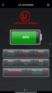 If your battery shows a warning or issue, take a screenshot of this screen and send it to Lithionics Support. It gives them the real-time data they need to diagnose the problem.